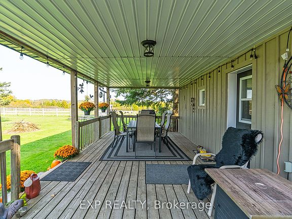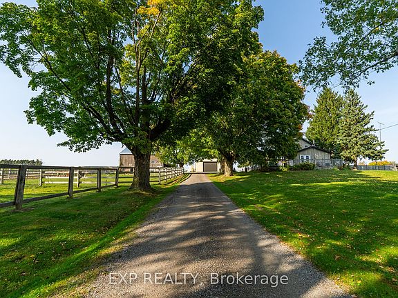 Escape to the Countryside Without Leaving Convenience Behind!** Discover this enchanting 30+ acre hobby farm nestled just 10 minutes from Brooklin in the much sought after Durham Region. With easy access to the 407, 412, Highway 7, Highway 12, and the 401, this property combines rural charm with unbeatable convenience. This 3-bedroom, 3-bathroom residence is designed for comfort and warmth, featuring a main-floor primary bedroom with ensuite, perfect for easy access and privacy. Relax on the inviting covered back porch overlooking a beautifully landscaped yard, or enjoy mornings on the front porch. The separate entrance leads to a finished basement with endless possibilities. *Equestrian-Ready Amenities* The property includes horse paddocks, a round pen, a sand ring, 4-stalls and a tack room, all ready for your equestrian needs. *Convenient and Versatile Outbuildings* Beyond the barn, you'll find a 40x60 outbuilding for projects or storage.*Stunning Scenic Views*-The mature maple tree-lined driveway and the open picturesque surroundings offer peace and privacy. A true haven for those looking to connect with nature. Ample parking ensures convenience for everyone. Farm Taxes