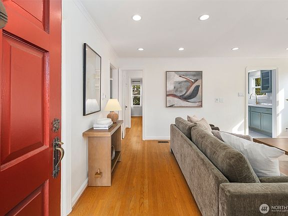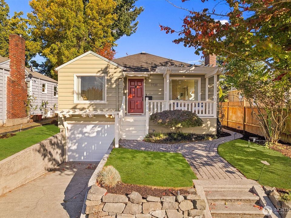 On a peaceful street just steps from Loyal Heights Playfield, this classic Cape Cod blends timeless charm with modern comfort. Southern and western exposure flood the home with natural light, showcasing original Mench millwork, hardwood floors, and a cozy wood-burning fireplace. The stylishly remodeled kitchen connects seamlessly to the lush backyard with a spacious patio—perfect for entertaining. Two bedrooms and a full bath complete the main level, while the lower level offers a third bedroom, ¾ bath, versatile rec room, generous laundry area, and attached garage. With recent upgrades to plumbing, electrical, and lighting, this home pairs peace of mind with preserved period character.