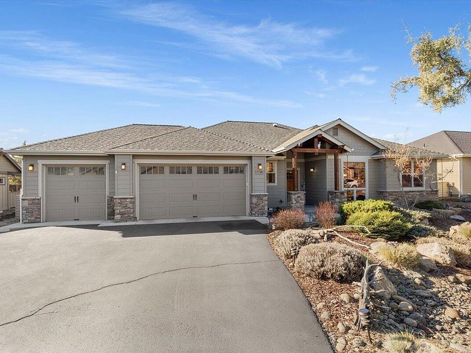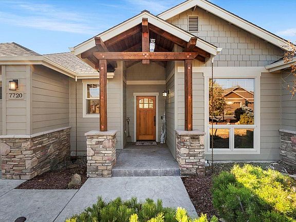 This home has a classic Central Oregon feel that exudes warmth with its vaulted wood ceiling, river rock fireplace, hardwood floors, knotty pine cabinets, and natural Juniper accents throughout.