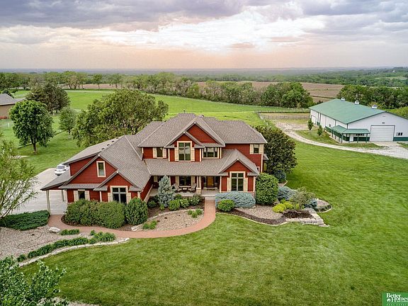 Here's your opportunity to own an incredible Gretna estate sitting atop 11.56 rolling acres. This impressive 5 bed 6 bath walk-out 1.5-story has plenty to offer with a 120 X 60 outbuilding horse barn, a heated/cooled 4-season sunroom, updated gourmet kitchen with stainless steel appliances & a large island including a space for a 10-person table accented by an additional fireplace, grand two-story living room with custom built-ins and hardwood flooring, main floor office and sitting room, all bedrooms with en suites, large primary with hardwood floors and bay windows, updated primary bath with large walk-in shower and full custom closet, a sprawling walk-out finished lower level complete with a wet bar, mother-in-law suite with separate entrance, huge maintenance-free deck, large patio with fire pit, multiple animal corrals, long private tree-lined driveway, unbeatable sunset views, the list goes on!