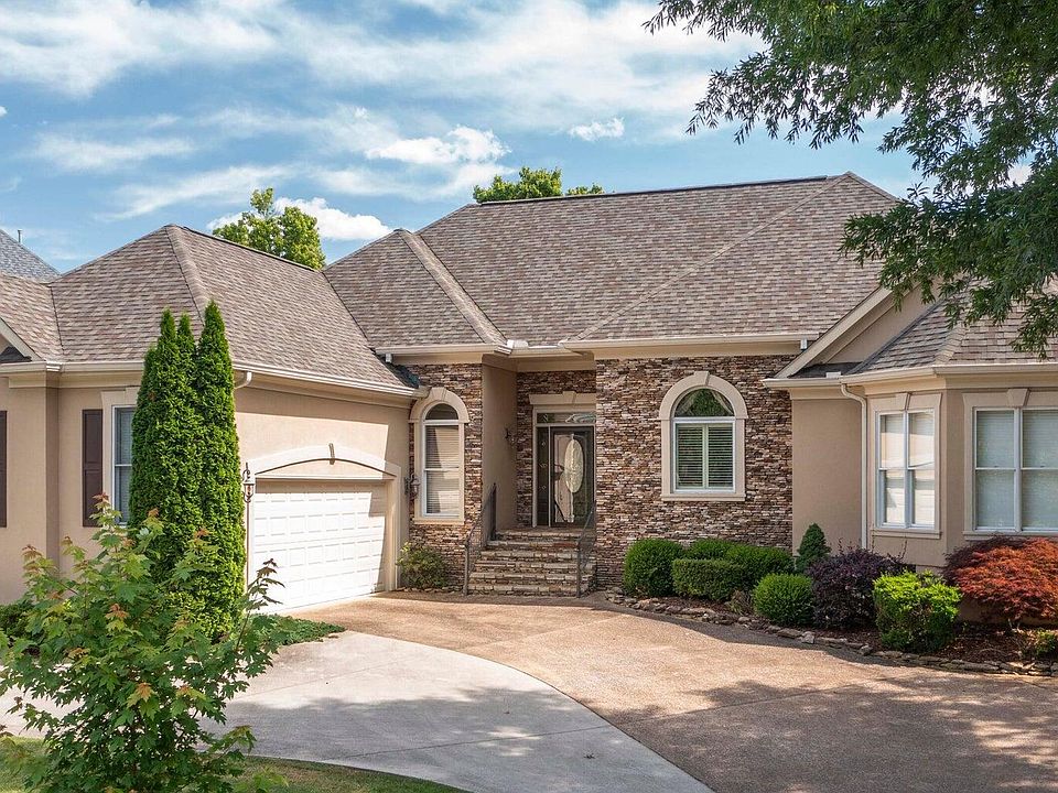 Welcome to 7720 Scrapeshin Trail, located in the prestigious golf course community of Chattanooga, TN. As you approach this charming home, you are greeted by its inviting presence and beautifully landscaped yard. Step inside and be amazed by the spaciousness of the large living room with its vaulted ceilings, creating an open and airy atmosphere. The kitchen is a chef's dream, featuring granite countertops, breakfast bar, drop-in gas 6 burner cooktop, dual oven, dishwasher, and even a wine cooler. Host elegant dinner parties in the formal dining room, complete with triple crown molding for that extra touch of sophistication. The family den is the perfect cozy retreat, with vaulted ceilings and a custom mantel and fireplace to gather around on chilly evenings. The oversized primary suite is a true sanctuary, boasting double tray ceilings, a sitting area, and a luxurious en suite bathroom with a jetted tub, shower, and large walk-in closet. The laundry room is both functional and stylish, with granite countertops for added convenience. Step outside onto the private screened porch with stone flooring and vaulted tongue and groove ceiling, the perfect spot to relax and enjoy your morning coffee. Beyond the porch, a stone patio overlooks the fenced backyard, providing a lovely outdoor space for entertaining or simply enjoying the fresh air. This one-level home offers a perfect blend of comfort and elegance, making it the ideal place to call home. Don't miss your chance to make 7720 Scrapeshin Trail your own slice of paradise in Chattanooga.