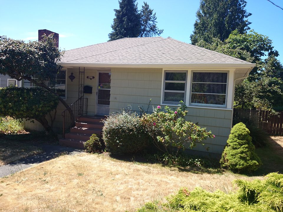 Charming home with nice mid-century touches. Newer exterior paint and roof really show off this home! You'll love the knotty pine kitchen, fabulous 1950's bar in huge family room, two frplcs, corner windows, hardwood floors and more. Large, bright laundry room. Garden area, and two car garage off paved alley. Just blocks from Westwood shopping and restaurants. Don't miss this West Seattle gem!