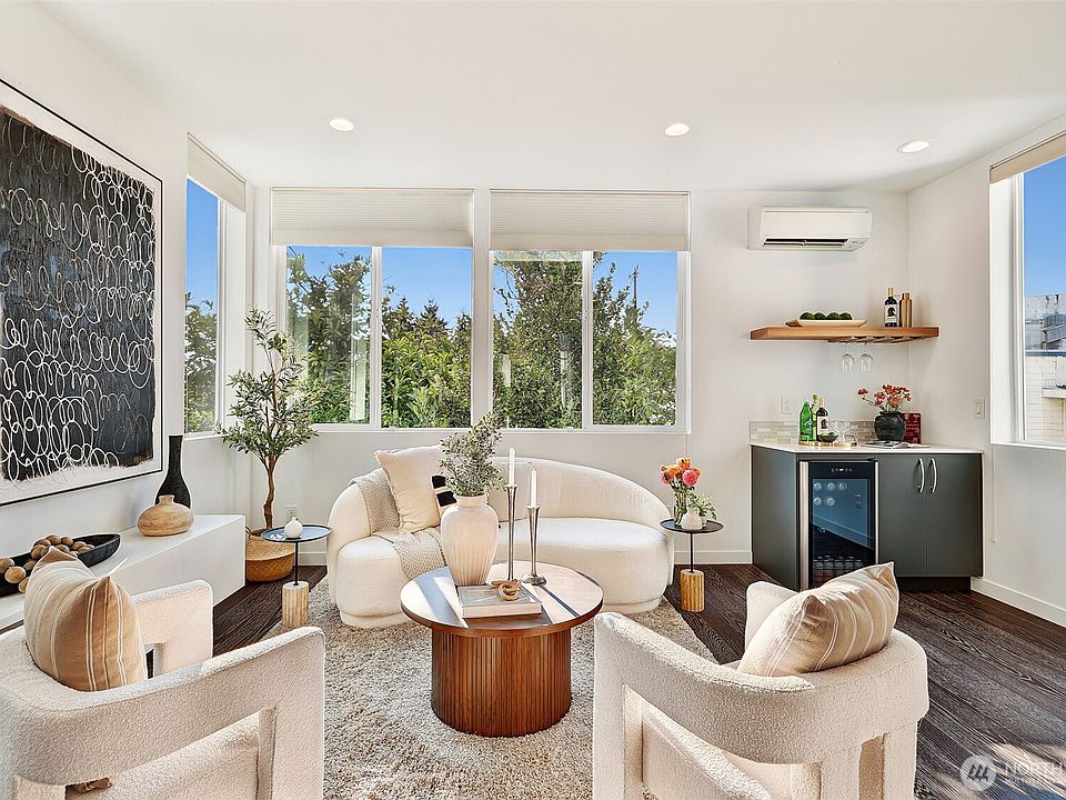 Like-new Seattle townhome for sale in Whittier Heights, wider and brighter than most. Soaring ceilings and walls of windows bring in natural light. The modern kitchen with gas range and large island is perfect for cooking and entertaining. Enjoy a fully fenced turf yard plus a rooftop deck with sweeping views. The spacious primary suite features a spa-like bath and king-sized comfort, with two additional bedrooms ideal for guests, office, or gym. Dedicated parking with EV outlet, easy street parking, and quick commute on tech shuttles and transit. All on a quiet street near Ballard shops, cafes, and restaurants.