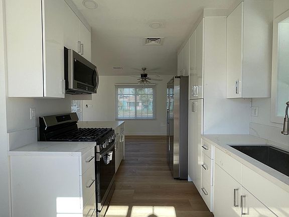 Your search ends here welcome to your dream home! This stunningly remodeled 3-bedroom, 2-bathroom residence offers modern elegance and comfort. Enjoy the sleek charm of stainless steel appliances, central air and heating for year-round comfort, stylish ceiling fans, and brand-new flooring throughout. Please note: the garage is not included, but ample street parking is readily available. Tenants are responsible for all utilities. Gardening services are covered by the property owner. Don't miss this opportunity call today for more information or to schedule your private tour! One year minimum lease.
