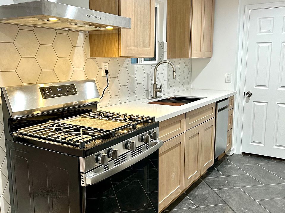 Updated kitchenRemodeled bathroomAbundant natural lightSleek cabinetryLarge private backyardGranite countertopsStainless steel appliances