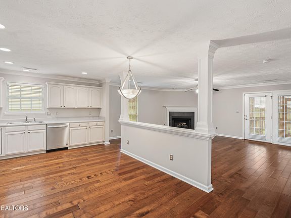 The ultimate location for easy, stylish living! Spend your evenings unwinding on the expansive screened-in porch, a true extension of your living and entertaining space. Inside, the open living room, kitchen, and dining area features a cozy fireplace that anchors the home with warmth and charm. Offering 1401 sq ft of all main-level living, this thoughtfully designed layout includes two large bedrooms and two full bathrooms. The primary suite features a spacious walk-in closet, a relaxing soaker tub, and a walk-in shower, creating the perfect retreat. Beautiful hardwood floors flow throughout, and the eat-in kitchen includes painted cabinets and black appliances for a fresh, inviting look. The exterior is just as appealing, with updated landscaping and a two-car garage providing convenience and curb appeal. This home blends comfort, style, and an unbeatable location—making it a standout option for anyone seeking quality one-level living.