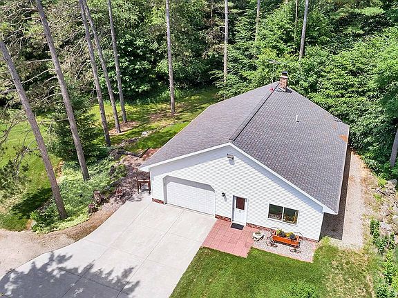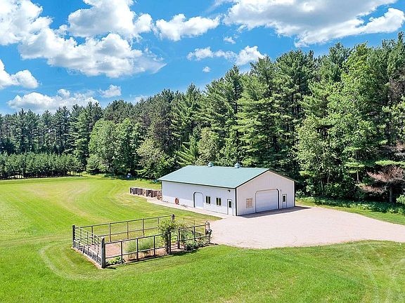 L-8187: Secluded in a beautifully landscaped setting, 4-bedrm, 2-bath ranch offers comfort and space. Consisting of 39+ acres w/ 5 +/- acres cleared w/ a food plot, balance wooded w/ manicured roads throughout. Woods is enrolled in Closed MFL w/ great timber. The 2,370 sqft home features an open-concept great room w/ vaulted ceilings, kitchen w/ abundant knotty alder cabinetry, and convenient main-level laundry. The partially finished, full basement w/ egress windows. Heated 2-car attached garage, plus two outbuildings: a 36'x40' heated outbuilding w/ a full bath, and a 40'x64' shop w/ concrete floor-perfect for hobbies, storage, or a home business. Outdoor living is just as inviting, with spacious stamped concrete patios, and serene wooded surroundings.