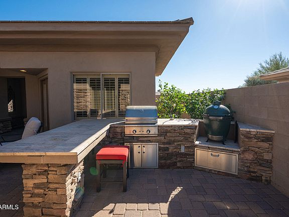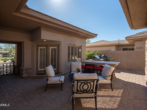 Discover this beautifully updated 3-bedroom, 3-bath residence with a versatile bonus room-perfect for a home office plus a detached casita ideal for guests. Situated on a quiet cul-de-sac with open space behind, this home offers a private backyard and a charming courtyard with a built-in gas grill—perfect for outdoor entertaining. Inside, you'll find new wood-like tile flooring throughout and a remodeled kitchen featuring an oversized granite island, custom cabinetry with ample storage, and stainless steel appliances. All bathrooms have been tastefully updated with new vanities and granite counters and custom tile, while the primary ensuite impresses with a custom walk-in tile shower and dual vanities. Located in the highly sought-after guard-gated Bellasera community, residents residents enjoy resort-style amenities and a low-maintenance lifestyleideal for full-time living or a lock-and-leave retreat.