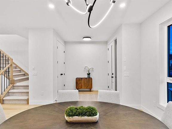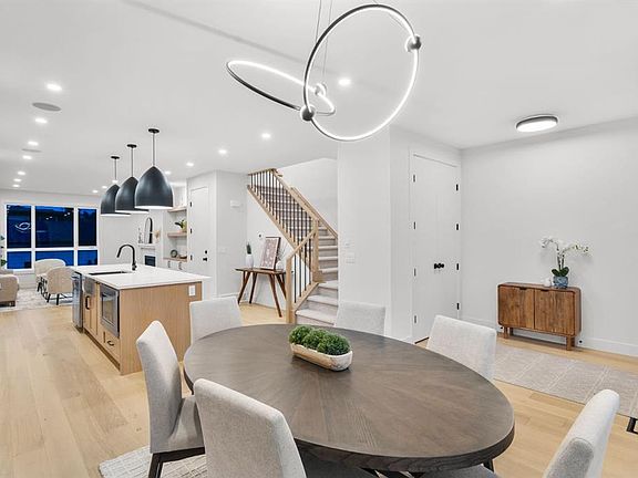 Formal dining roomBeautifully appointed kitchenWhite oak cabinetryLarge quartz islandPremium kitchenaid appliancesSleek gas fireplaceOversized windows