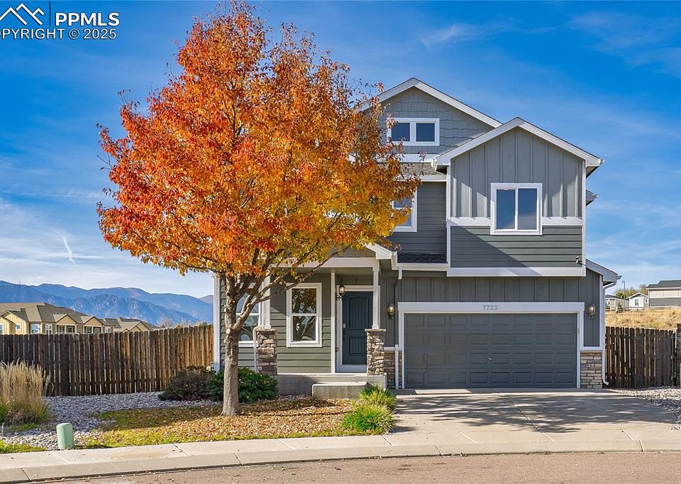 Breathtaking Front Range mountain views steal the show in this beautifully maintained 4-bedroom, 3-bath home, ideally located on a quiet cul-de-sac in one of Fountain’s most convenient neighborhoods. From sunrise to sunset, you’ll enjoy stunning views from multiple rooms throughout the home and from the expansive fenced backyard — the perfect spot to relax, entertain, or simply soak in Colorado’s beauty. Built in 2013, this home offers the modern layout and finishes today’s buyers love. Inside, you’ll find: Bright, open-concept living areas with large windows framing the mountain backdrop Fresh interior and exterior paint for a move-in-ready feel New carpet and gleaming hardwood floors in the kitchen and dining areas A dedicated office space ideal for working from home A spacious primary suite with a luxurious 5-piece bath and walk-in closet Laundry upstairs for ultimate convenience (washer & dryer included!) The property sits on an oversized 8,650 sq. ft. lot, offering a private backyard retreat with plenty of space for gatherings, pets, or play — all while enjoying panoramic mountain views and peaceful cul-de-sac living. Perfectly situated just a couple minutes to I-25, Fountain's best shopping and dining, and Powers Blvd, 12 minutes to Fort Carson and the airport, and 19 minutes to Peterson SFB. This home blends modern comfort, scenic tranquility, and everyday convenience in one exceptional package. This one will go quick, schedule a showing today!