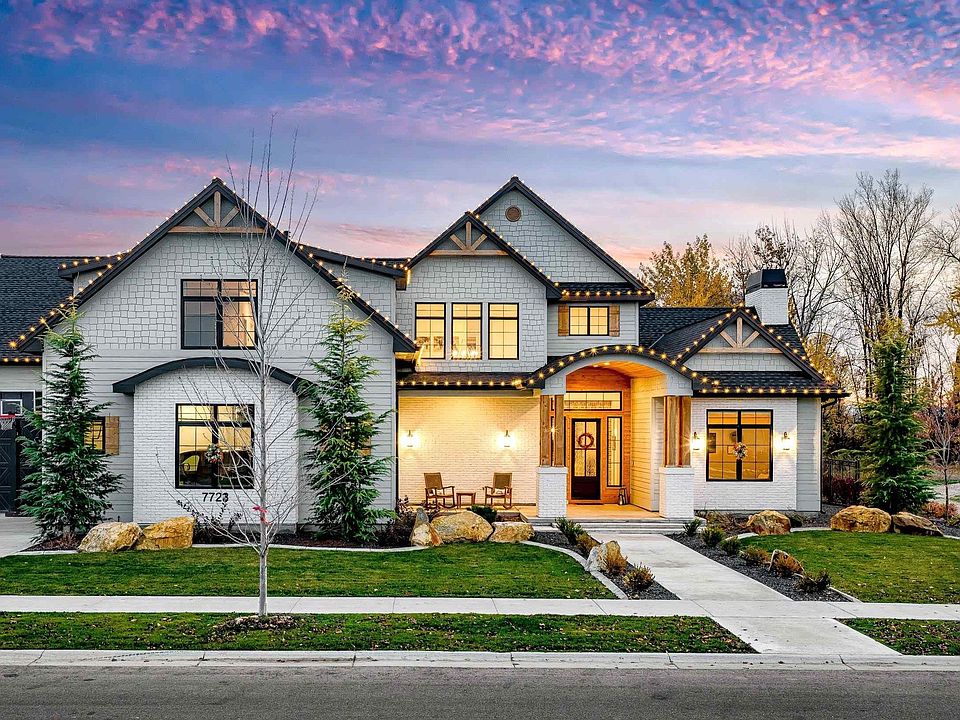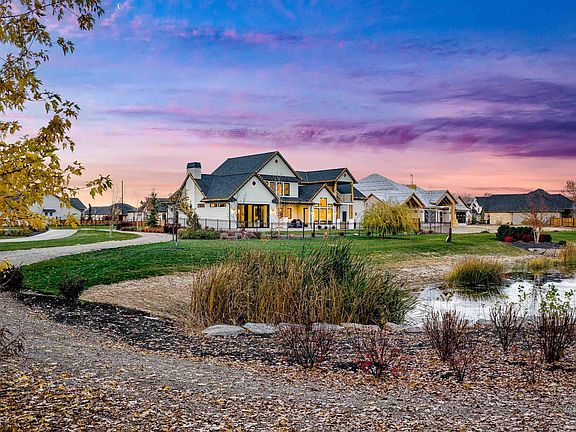 Experience a perfect blend of refined comfort and luxury living in this stunning custom-built waterfront home on ~.316 acres! Nestled on a beautiful corner lot overlooking a stocked fishing pond and the Boise River, with a nature trail right outside your door, this gated community also offers resort-style amenities- pool, beach and fitness center. Soaring ceilings and expansive windows provide a bright, spacious floorplan featuring an open great room, chef’s kitchen with butler’s pantry and an inviting dining area. A sunroom provides additional space to gather or unwind. The desirable main level primary suite showcases a vaulted beamed ceiling, dramatic windows and direct access to back patio, and a luxurious spa-inspired ensuite with heated floors, infrared sauna, shower prewired for steam, soaking tub, bidet, and custom his-and-hers closet system with convenient access to laundry. The main level also includes a guest bedroom/flex room with full bathroom access. Upstairs, find a dedicated office or 5th bedroom with covered balcony, two generously-sized bedrooms and full bathroom, plus a bonus/flex room with half bath, built-in bunks, and space for recreation, media/tv room. Oversized, insulated and epoxied 2-car garage with overhead storage PLUS 34’x16’ boat bay/sport court with 13’ door. Hot tub, RO water filtration, home security- see docs for more premier upgrades!