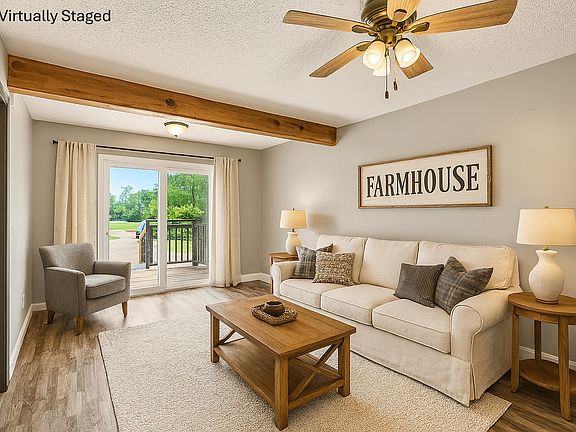 Over an acre of space with bonus potential, this is the one you have been waiting for. The detached two-stall garage offers a walk-up attic for storage, studio, or office. Surrounded by mature trees and open skies, this one story feels like a private retreat while still being minutes from town, lakes, and major roads. Enjoy mornings on the deck, cozy evenings by the fire, and room to spread out in every direction. A charming chicken coop adds a touch of country fun. The seller is offering a concession rate buy-down to help lower your monthly payment as you settle in.