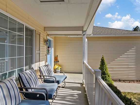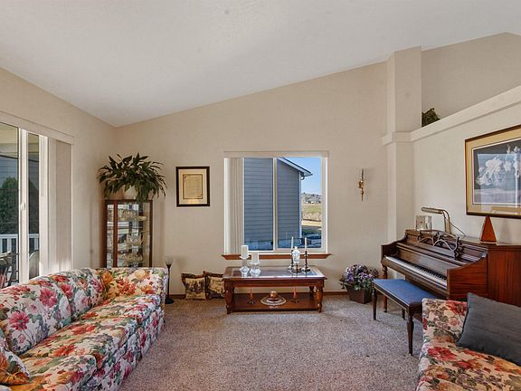 Lovingly cared for West Plains move in ready home in gated West Terrace Place community. One level living: 3 bed, 2 bath home on 9 hole Plains Golf Course. Sellers to provide flooring allowance with full price offer. Enjoy expansive views of golf course, stunning sunsets & wild bird watching. Easy freeway access with short commute to Cheney or downtown Spokane. Close to nearby lakes for fishing & water sports. Great room features gas log fireplace. Kitchen has oak cabinets. Room to eat at the island or dining table. Separate formal living room. Large primary bedroom has walk-in closet & shower. 12x20’ deck with SunSetter retractable awning, accessible from primary bed & great room. 3rd bedroom set up as a den/office. Gas H2O & furnace, central air, vinyl siding, sprinkler sys. Laundry has extra storage. Extra-large 2-car garage, plenty of storage. HOA plows street & maintains common area. Need gate code to drive into community but can walk thru man gate to view home.