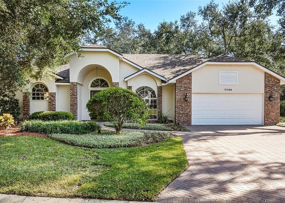 Welcome to this beautifully upgraded 4 bedroom, 2.5 bath pool home located in the tranquil, gated golf community of St. Ives in Orange Tree. From the moment you arrive, you’ll notice the thoughtful details, from the brick-paved driveway and walkway to the oversized 2-car garage. Step inside to an inviting formal living room featuring vaulted ceilings, custom drapes, and expansive sliding glass doors that frame your private outdoor oasis complete with a sparkling pool, spa, and large covered patio. High vaulted ceilings and abundant natural light flow throughout the home, creating an open and airy feel in every room. The upgraded kitchen is a standout, showcasing granite countertops, refreshed light cabinetry, and stainless steel appliances. The family room offers even more charm with its gorgeous brick fireplace and has a half bath for easy access for guests. While the spacious primary bedroom is filled with sunlight and serenity and has slider doors that lead out to the beautiful pool and patio. The en suite bathroom is a luxurious retreat, featuring custom his-and-hers vanities, a large walk-in shower, and a relaxing soaker tub. Step outside to enjoy Florida living at its finest with an expansive covered patio for dining or lounging, a sparkling pool and spa, and an intimate extended paver patio surrounded by lush new landscaping that provides a sense of peace and seclusion. The 3 spare bedrooms are all good size with nice spacious closets and high ceilings as well. There is also an indoor laundry room with plenty of room for storage and organizing your laundry. Located near A-rated schools and just minutes from Universal Studios, Sea World, Disney World, Restaurant Row, and only 20 minutes from the airport and downtown. This home is a rare find in one of the area’s most desirable neighborhoods. Come check this home out and see all that living in Orange Tree has to offer!