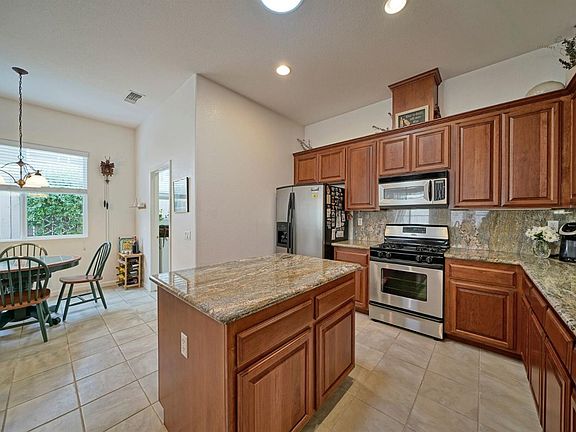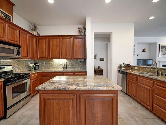 Beautiful 55+lifestyle with 2 bedroom & office. Ready for move in NOW. Light and bright, rich cherry cabinets,formal/casual dining, granite kitchen/full back splash, plush carpet and upgraded tile flooring. Master bath includes soaking tub and separate shower/seat. Covered patio with plenty of shade, fresh veggie plant area.Huge master walk in closet and kitchen pantry. Washer, Dryer and Frig included. Close to nature trails and gazebo areas.Garden,tennis,bocce,pickleball,swimming. NO MELLO ROO
