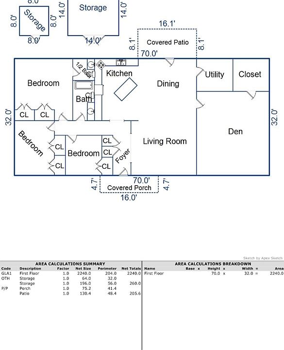 - Total interior livable area: 2,240 sqft
