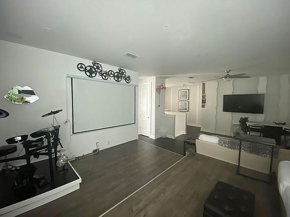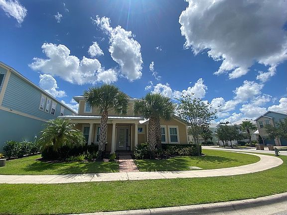 One of the best two 2 story homes that Reunion has to offer in Patriots Landing. The Home Sits on an oversized corner lot with energy saving Solar Panels (10 Year Warranty) on high quality metal roofing. It's attached to a 2 car garage with brick paver driveway. Because it is on a corner lot, the driveway is also larger then most. This home is also one of the few in Reunion that has a pool and spa surrounded by a solid fence for utmost privacy. The included high-end furnishings are all from Ethan Allen, Thomasville, Lexington, and Bernhardt. The modern and bright kitchen comes with updated white cabinets, granite counter tops, and stainless-steel appliances, with a countertop and four high top swivel chairs, with a connecting dining area that overlooks the living room and outside patio. The largest master bedroom is on the main floor. This bedroom also has the largest walk-in closet and bathroom in the entire house, jacuzzi sized tub, long granite counter, two sinks, a large utility closet, along with a separate door inside that leads to the lavatory for extra privacy. The laundry room is also located on the main floor with a huge storage closet and door that leads to the spacious garage. Upstairs is a bonus space that has a large drop-down remote controlled projector screen, professional karaoke system with wireless microphones, LED ceiling speakers, 65" flat screen, Roland electronic drum kit with headphones, and an old fashioned popcorn concession stand for movie night. This space also has black out shades to enjoy moving night during the daytime too. Come here to live the resort life in luxury and style.