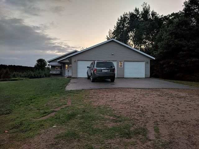 Great location just minutes outside of Stevens Point!! This 1 story home sits on 4.58 acres and includes a HUGE 64' x 40' pole shed! The main level of the home features a large kitchen/dinette area with plenty of built-in cabinets and counter space, a 12' x 12' deck off the dinette, main level laundry with utility sink just off the garage, a family room (currently be used as a dining room), a master bedroom with a private bath and walk-in closet, two additional bedrooms and a full bath. The basement is set up for a 12' x 11' family room (currently carpeted) and 2 additional bonus rooms both 12' x 8' each (also carpeted). Tons of storage space available outside of these rooms ready to be set up in a way that meets your needs! The property comes complete with all appliances and a radon mitigation system already installed! The attached 3 car garage has been temporarily converted into additional living space (33' x 24') with floating laminate floors and air conditioning but could be converted back to a garage as the overhead garage doors are still in place and functional. The 64' x 40' pole shed is one not to be missed! It includes 2 overhead doors, an additional sliding door, a loft and an office area. Tons of room to run and play for kids and adults alike! *Total Finished Square Footage of the home does not include the attached garage of 792 sq. ft. (33' x 24'). All measurements are believed to be true and accurate. Buyer to verify prior to closing.