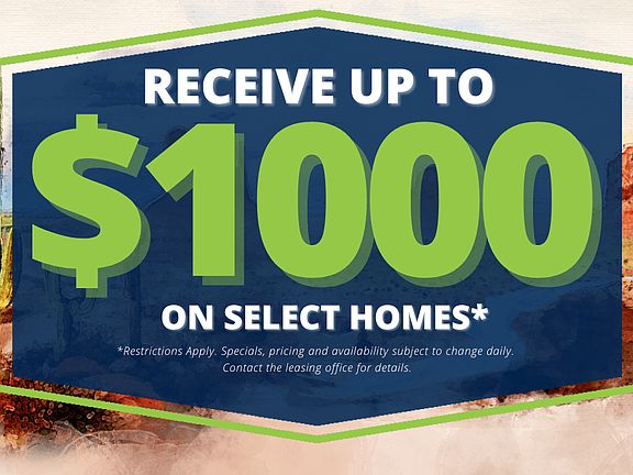 - Special offer! Up to $1000 off select apartment homes*! *Restrictions Apply. Specials, pricing and availability subject to change daily. Contact the leasing office for details.