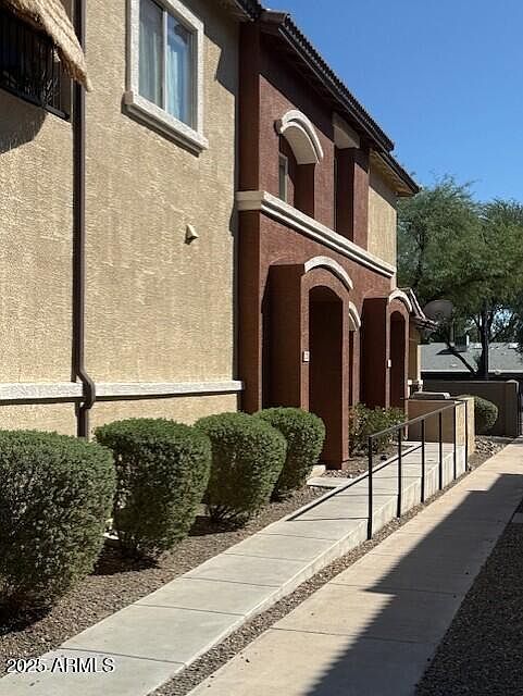 Welcome to Villa Rialto Condominiums. This unit offers 2 Bedrooms, 2 Bathrooms, a single car garage and is in a convenient location near restaurants, and shopping. The 60 and 202 are very convenient. As you walk inside you will find neutral colors, fresh paint, new carpet, and blinds. The kitchen offers upgraded cabinets, stainless steel appliances and granite countertops. Fresh updates are noticeable. Move in ready. Washer and dryer are included. The primary suite offers a walk in closet, and double sinks. It has its own patio. The community offers a sparkling play pool, a children's playground, two dog play areas, a clubhouse and a workout facility.