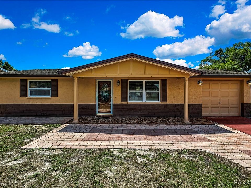 One or more photo(s) has been virtually staged. Welcome home! This freshly updated 2-bedroom, 1-bath gem spans approximately 1,044 sf and offers an inviting open floor plan, perfect for modern living. The galley-style kitchen shines with updated cabinetry, countertops, and two gorgeous leaded glass cabinets that add both charm and character. Tile flooring throughout the main living area ensures easy maintenance—while cozy carpet defines the bedrooms. A dedicated garage and driveway add convenience, all nestled on a ~5,000 sq ft lot with room to personalize the outdoor space. Located in Port Richey’s Gulf Highlands area—with no HOA and central air and heat—this home is well-priced at just $225/sf. Whether you’re a first-time buyer, downsizing, or seeking an investment, this home offers smart value and unique style in a friendly locale.