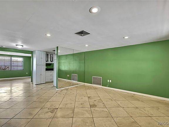 Cozy carpetLeaded glass cabinetsInviting open floor planGalley-style kitchenTile flooringUpdated cabinetry