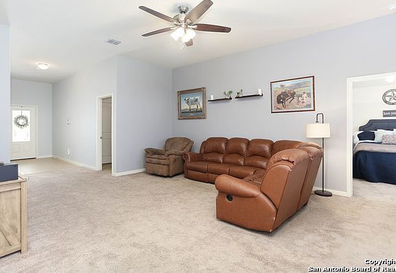 Introducing your new residence! Step into this delightful single-story home located at 7726 Watersedge Cove, where modern elegance blends seamlessly with charming features to suit any lifestyle. Boasting 3 bedrooms and 2 bathrooms, this home offers both comfort and coziness in one of San Antonio's most sought-after areas. As you enter, you'll be greeted by a stunning kitchen adorned with beautiful wood cabinets and energy-efficient appliances, including a refrigerator that comes with the home. The space is