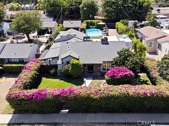 A spectacular 3-bed, 2-bath single-story pool home poised for the taking in Lake Balboa area! Beyond an enormous bougainvillea hedge resides this picture-perfect, brick accented home surrounded by luscious accents of greenery and yard space. With 1,568-sqft of living space, the large panoramic window draws in natural sunlight to emphasize the unique characteristics of the wood beamed and wood paneled ceilings, new honey blonde laminate floors, new doors, new recessed LED Smart lighting (can be controlled from a mobile phone), and a Smart thermostat, to name a few. Rich brick accents enchase the living room’s fireplace while acts as a superb accent wall on the backside of this bright and user-friendly kitchen. Natural wood cabinetry with minimalist hardware plus glass inlay doors are of great contrast to the sleek granite countertops and subway tile backsplash of this kitchen equipped with stainless-steel appliances that includes a Southbay commercial grade range to really heat things up. A double door entry branches into the airy family room before heading out to the back patio area. The primary bedroom achieves great heights with its tall, slopped ceilings, further accentuating the free-standing closet at the rear of the room and the luxurious en-suite bathroom fully illuminated by an overhead skylight. Additional features include a newer copper plumbing, a new electrical panel and a tankless water heater. The home includes a bonus/studio room situated behind the detached garage that is already prepared for an ADU. Completely awashed in sunlight is this private backyard, the perfect venue for entertaining or simply relaxing pool side or in the restorative waters of the in-ground pool. Minutes to Lake Balboa Park, Van Nuys Airport, CSUN, Target, Ralphs, local schools, restaurants, shops, the bustling Ventura Blvd with its many eclectic establishments, the 101 FWY, and more! Over $150k spent on upgrades to the property. Mobile home connected to sewer and power is included in sale.