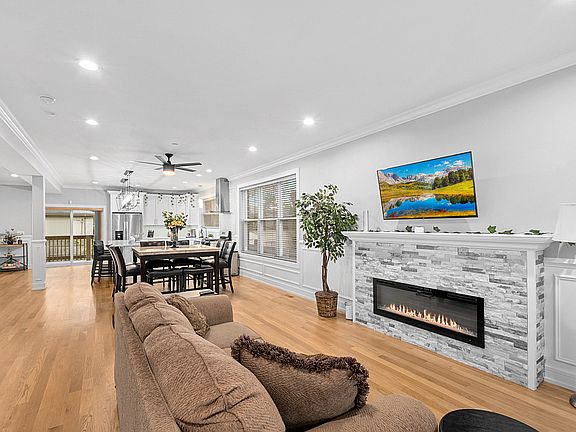 Nearly New Custom Luxury Home - 4BR | 3.1 Baths | 3,200+ Sq. Ft. Prepare to be impressed by this custom-built masterpiece that blends timeless design, luxury finishes, and exceptional craftsmanship. The covered front porch and detailed exterior set the tone for the quality that continues inside. The bright, open interior showcases rich millwork, wainscoting, decorative columns, and hardwood floors throughout. The sunlit living room features a modern fireplace and recessed lighting, creating an inviting space for everyday living. The gourmet kitchen is a showstopper with 42" white cabinetry, crown molding, quartz countertops, a custom tile backsplash, and an expansive center island-ideal for entertaining. A stylish bar/coffee bar and pantry offer flexible use as a home office. Custom illuminated staircase leads you past a striking chandelier to the beautiful primary suite which boasts a spacious walk-in closet and spa-style bath with freestanding tub, oversized glass shower, dual vanities, and private water closet. Additional bedrooms are generous in size and share a beautifully finished full bath. Prepare to be blown away by the most incredible walk-in closet you have ever laid eyes on. The finished lower level offers 12-foot ceilings, an expansive rec room with fireplace, full entertainment bar, and designer full bath-perfect for hosting gatherings. Enjoy two outdoor living spaces, including a covered front porch and large rear deck overlooking the fully fenced backyard. 2 1/2 car attached garage with soaring ceilings. This home offers over 3,200 sq. ft. of thoughtfully designed living space-an entertainer's dream and the perfect blend of comfort, style, and function.