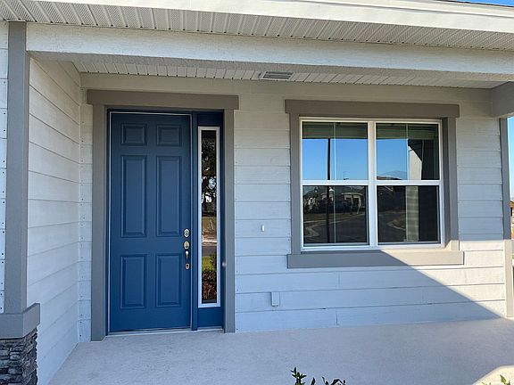 Corner lot property boasts tile throughout, upgraded kitchen with stone countertops and soft close drawers, vaulted ceilings, and a covered porch perfect for enjoying the Florida sunshine. The house features a covered lanai, ideal for outdoor entertaining, as well as an extra room that can be used as an office or additional living space. Residents will have access to community amenities including a pool, walking trails, FAST Membership, Pump Track, and close proximity to schools and golf courses. With a 2 car garage and being part of a golf cart community, this home offers convenience and luxury in a prime location. Don't miss out on the opportunity to make this house your new home!