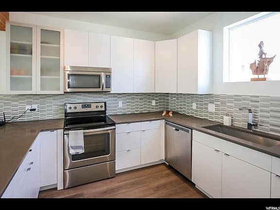 Sleek Rooftops Townhome! Winning floorplan offers open spaces, tons of natural light and modern urban touches. Wide-plank laminate floors throughout the main level. Beautiful white kitchen features quartz counter tops, breakfast bar, patterned tile backsplash, stainless appliances and extra deep/wide sink. Huge master suite offers luxurious master bath complete with separate tub and glass tile shower, dual vanity and tile floors. Other features include main floor den or bedroom, courtyard and rooftop views, large 2-car garage (two wide), exposed beam, convenient location and upper level laundry. Don't miss this opportunity to live in one of the valley's most sought after communities!