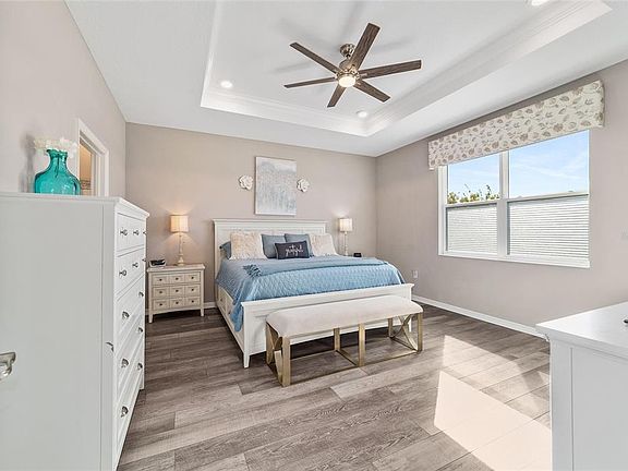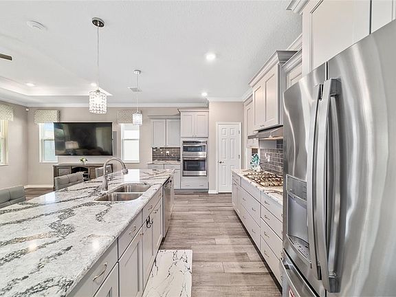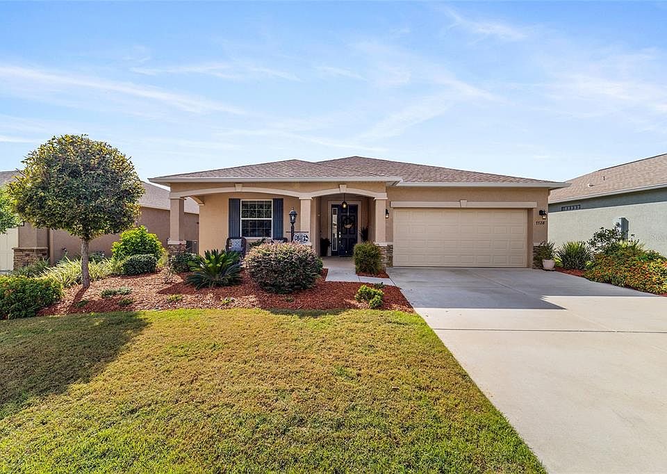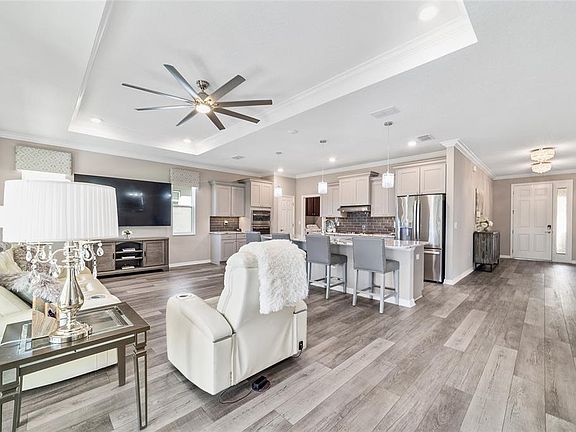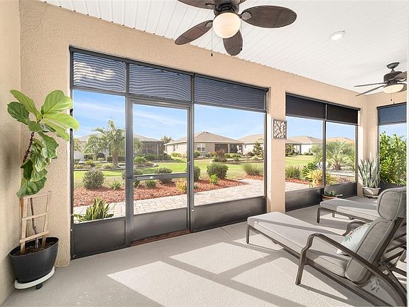 Totally Furnished, Turn-Key & Solar Powered — Just Pack Your Suitcase! Welcome to this stunning, move-in ready 2021 Ginger Model in Weybourne Landing at On Top of the World, offering over $90,000 in premium upgrades, fully owned solar panels for low utilities, and being sold completely furnished and turn-key—just bring your suitcase and start enjoying the Florida lifestyle! This beautifully appointed 2-bedroom, 2-bath home with a versatile flex room perfectly blends style, comfort, and efficiency. The gourmet kitchen is a true centerpiece, showcasing Cambria quartz countertops, an oversized island, stainless steel appliances, a 5-burner gas cooktop, built-in convection oven/microwave, tile backsplash, staggered soft-close cabinetry, under-cabinet lighting, pendant and recessed LED lighting, and a spacious pantry. The open living area features crown molding, tray ceilings in both the great room and primary suite, and luxury vinyl plank flooring throughout—no carpet! French doors lead to the flex room, ideal for a home office or den. The primary suite easily accommodates a king bed and sitting area, and includes a large walk-in closet and a spa-inspired bath with dual sinks, a tiled walk-in shower with seat, and grab bar. Additional upgrades include a laundry room with built-in sink and cabinetry, fully owned solar panels for energy efficiency, a Lennox Pure Air HVAC system, water softener, ceiling fans throughout, extra garage outlets, and a large screened lanai with shades overlooking a brick-paver patio. Seller is also including a one-year home warranty for added peace of mind. Located in Weybourne Landing, a gated, fee-simple community within On Top of the World, residents enjoy exclusive amenities including a private clubhouse, resort-style pool, pickleball courts, fitness center, and miniature golf. For a small additional fee, residents may also access the world-class amenities of On Top of the World—Ocala’s premier 55+ community—with golf cart access to shopping, dining, banking, and healthcare. Experience effortless Florida living in this turn-key, fully furnished, solar-powered home—schedule your private showing today!