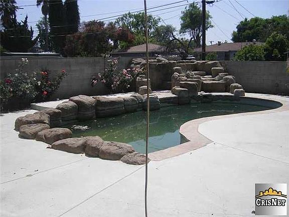 HUGE PRICE REDUCTION FOR QUICK SALE!!! Awesome Reseda POOL HOME with rock waterfall that flows into the pool! Get ready for summer Fun! Fully Gated front yard with amazing water fountain as you enter the property, Beautiful custom brick fence, Features 3Bed/2Bath, Patio has been enclosed and being used as a 4th bedroom, Tile floors throughout, Garage at rear of home with alley access, Central A/C, Huge backyard with pool, Come put your finishing touches on this wonderful place to call it HOME! Hurry and make your appointment to view it before it's sold!