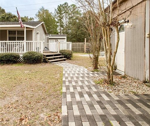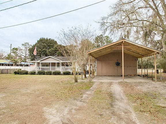 Come see this cozy 3br/2ba home with large porches, a spacious carport/storage building, an invisible fence, a firepit area, and beautiful upgrades inside. The kitchen has butcher block countertops with a subway-tiled backsplash and upgraded appliances. The bedrooms are all carpeted and the primary bedroom is well-separated from the other two bedrooms. The back section of the home includes a large room that can be used as a dining room or a multi-purpose room, along with another bonus room beside it that can be closed off behind two barn doors. This home is convenient to Jacksonville International Airport, Okefenokee National Wildlife Refuge, and other area attractions. You have to see this gem for yourself!