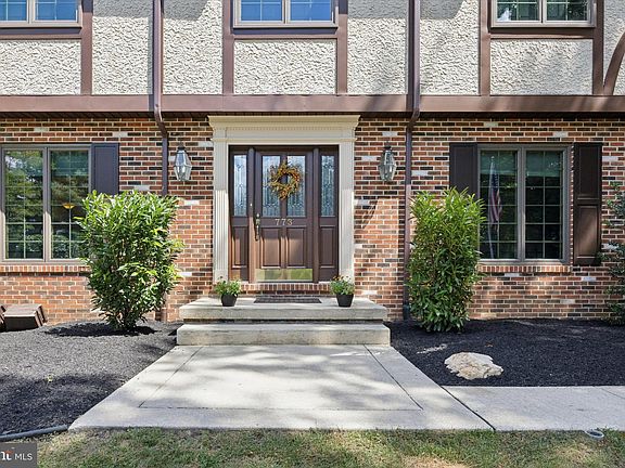 This beautiful custom 4-bedroom, 2 full bath, 2 half bath Tudor-style home is tucked away on a scenic lot on a charming cul-de-sac in Springfield Township. From the moment you step onto the tiled center hall, with its large double coat closet, you’ll notice the thoughtful design and inviting flow of the floor plan. The formal living room offers a welcoming retreat, while to the right the spacious formal dining room offers a chandelier and it opens into the fabulous eat-in kitchen. Here you’ll find hardwood floors, abundant solid wood cabinetry, granite countertops, dishwasher, trash compactor, recessed lighting and a center island with an electric cooktop oven and microwave, The sunny breakfast area has a ceiling fan & is the perfect spot to sip coffee while gazing out the sliding doors that lead to the two-tiered composite deck, hot tub, and expansive backyard. The kitchen flows seamlessly into the bright and airy Great Room with vaulted ceilings, exposed wood beams, skylights, and a striking brick wall with propane fireplace, this room feels both dramatic and comfortable. Sliding doors here also open to the deck, making indoor-outdoor living a breeze. Convenient first-floor features also include a private office, a powder room, and interior access to the oversized two-car garage. The garage is equipped with an electric opener, ceiling fan, and direct access to the basement for extra practicality. Upstairs, the main bedroom suite is a true retreat with a walk-in closet and a spa-like en suite bath featuring a tiled walk-in shower and double vanity. Three additional bedrooms offer great space and versatility. The second bedroom includes the laundry closet, while the third is nearly as large as the primary. The fourth is currently used as a dressing room, outfitted with built-in closet storage and has bessler stairs to access to the floored attic. A ceramic tiled hall bath with a full tub completes this level. The finished portion of the basement adds even more living space, with a heated bonus room, powder room, and open areas ready for your personal touch. Step outside to your private backyard oasis, where the 2 tiered composite deck and relaxing hot tub create the perfect setting to unwind or entertain Additional highlights include; Two Zoned HVAC (approx 9 yrs old) with Aprilaire automatic humidifier, 200+ amp electric, All newer windows (except the office & PR), NuTone whole house vacuum system, Newer water heater, Six panel solid wood doors, skylights, ceiling fans, Oversized 2 car garage & a long newly sealed private driveway, , gutter guards, mature landscaping with exterior lighting & a large shed with electricity- could be a work shop! This home truly has timeless Tudor style offering generous living space, quality finishes and a prime Springfield Township location close to shops, eateries, parks and easy access to major routes and center city... come take a look and you'll want to call this place "Home"