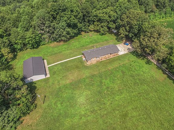 Private setting minutes to the lake. Brick home with 23.48 acres. Partially wooded with spring and small waterfall. 4 plus car detached garage. New HVAC and duct work. Approx. 3 year old roof.