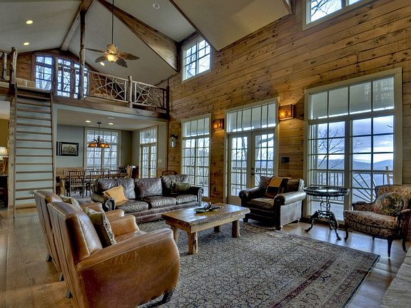 MOUNTAIN MAJESTY: Crowned at 2900' elevation this 3 bedroom, 4 bath property with old world, rustic design elements evokes ancient memories. You or your rental guests embark on a four wheel adventure and enjoy open conversations with friends and family beside the oversized stone mantles of the fireplace in the great room or more intimate talks in front of the crackling embers in the primary bedroom on main. This property's floor to ceiling windows all along the main level blur the lines between sanctuary and sky in this open concept for uninterrupted mountain living. The eat-in kitchen is complete with Dacor appliances, double ovens, double dishwashers, and granite countertops. The open great room and dining room offer unobstructed views from any location that flow to the wrap-around deck overlooking mountain vistas for quiet morning moments with coffee or sipping sunset cocktails The loft acts as an indoor treehouse, reading nook, or bunk room perched high above the canopy. The custom mountain laurel railing leading up to the upper floor brings in natural and local details. Outdoor living spaces boast open deck space and fireplaces for barbecues in the Spring and Summer or marshmallow roasts in the Fall and Winter. Perfect privacy paired with the incredible views are what make this retreat so special&with two gates for added security and bordering NATIONAL FOREST. Road improvements, new roof, and repaired deferred maintenance has been completed for added value. 2023-09-21