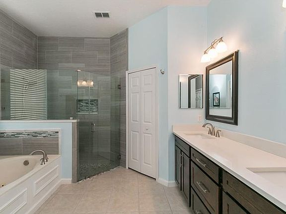 Model perfect Lennar Hampton II model with bonus in gated Brookestone! You will love this BRAND NEW kitchen! Farmhouse sink, stainless steel appliances, granite countertops, and closet pantry. Check out the extended screened lanai! Perfect for entertaining! And, if that isn't WOW enough, head to the lavish master suite! Master bedroom is downstairs and is complete with a sitting area, sliding glass doors to the lanai, and hardwood floors. Master bathroom is stunning! Upgraded shower with frameless shower door, upgraded tile and glass tile accents, a large soaking tub and a vanity with framed mirrors over twin sinks complete this relaxing retreat. This beautiful home features a flexible split bedroom floorplan and expansive fenced backyard! Have a great time entertaining family and friends with the open kitchen and family room. Upstairs bonus room is the perfect man cave, media room, or crafting space! Separate formal living room and formal dining room. Fourth bedroom can also function as a nursery or home office. Brookestone is a great neighborhood with a fantastic location! Easy access to Florida's turnpike, the 429. Shopping, dining, and area attractions are all nearby. Great school districts - Westbrooke Elementary, Sunridge Middle School, and West Orange High School. The community park has a tot lot, lighted tennis and basketball courts. This home is just waiting for your family!