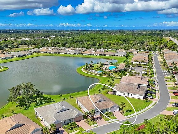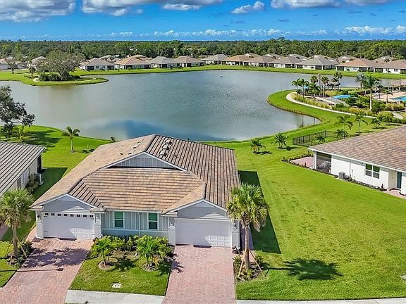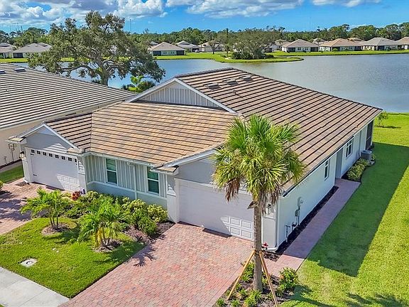 1st time offered. Beautiful waterfront villa with relaxing broad views of green space and the shoreline. Newly built on a premium waterfront location in 2022. The functional open floor plan features a Great Room and Kitchen with a pantry. The split plan has the main en-suite bedroom, guest bedroom, and the large den all separated from each other. There are several ways to utilize the den, including the addition of a closet to make it a 3rd bedroom. The block construction of this home features 1500 square feet under air, and it does include impact windows. Bring the cars, boats, and other toys, the 2 car garage has plenty of space to support your activities. The open floor plan is enhanced with 9 foot ceilings and 8 foot doors. There is carpet in both bedrooms and easily cared for tile in the rest of the home. The clubhouse, pool, and community mailbox are a very short distance away, just a 1 to 2 minute walk. There are sidewalks and walking trails for outdoor exercise, and there is a fitness area in the clubhouse. The Palencia community is convenient to historic downtown Venice, Publix shopping centers in 2 directions, and the new Sarasota Memorial Hospital is less than 10 minutes away. The Gulf beaches are a short drive away, as is the waterfront Gulf dog park. There are more beaches and interesting waterfront locations in nearby Nokomis, Osprey, and Englewood. Don’t forget all of their nifty little mom and pop shops. The hotspots in and around Sarasota are easily accessible via I-75 or the Tamiami Trail. Just say “the Trail” if you want to be a local. If you love shopping, and if you appreciate the benefits of a scientific education, you are only 20 minutes from the elegant UTC mall, and the adjacent, newly built (it just opened yesterday, October 8) Mote SEA, which stands for the Mote Science Education Aquarium. There are several golf courses within 10 minutes of Palencia, and over 40 courses within a 30 minute ride. Come to see your new home and all the fun things that the Gulf Coast has for your heart, for your family, and for your best lifestyle.