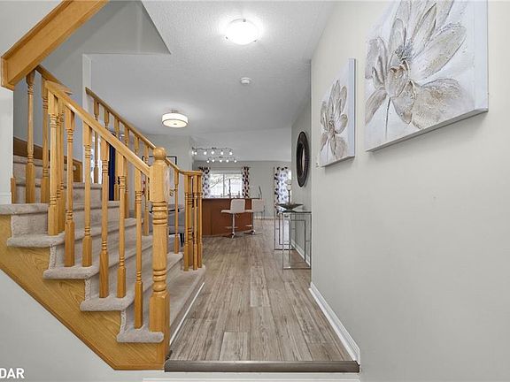 Beautiful End Unit Townhome in the highly desirable family-friendly Coates Neighborhood! This spacious 1541 sq. ft. End Unit Townhome offers a Fully Finished Basement and parking for 3 vehicles! Freshly painted throughout, the home features a renovated main floor powder room and modern luxury vinyl plank flooring on both the main and upper levels. The large kitchen is complete with S.S Fridge, S.S Dishwasher, S.S Built-in Microwave, Stove, upgraded sink, stylish back splash, and direct access to a low-maintenance backyard with a large deck and gazebo—perfect for entertaining. Upstairs, you’ll enjoy the convenience of second-floor laundry, a spacious primary bedroom with 3-piece en suite and walk-in closet, plus two additional great size bedrooms. The fully finished basement offers a large recreation room and den, providing plenty of space for family living, work-from-home, or play. Oversize garage w/ wood shelving for storage. Situated in a family-friendly community close to parks, schools, shopping, and transit—this home checks all the boxes!