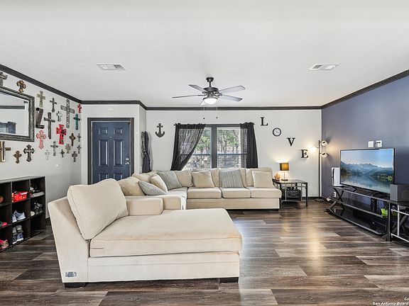 *Motivated Sellers* Welcome to this serene 1.13 acre property, offering plenty of open space and featuring a 2022 Palm Harbor 3 bedroom, 2 full bath home with a versatile flex room or office for comfortable living. The lot is filled with cedar trees, adding a private, natural atmosphere. With three entrances, one being a wrap around driveway, access is a breeze. Additionally, an RV pad with FULL hook ups (30/50 amp) makes this space ideal for friends & family to visit. If your a nature lover and looking for a peaceful retreat, with extra accommodations, this property offers it all. Another great perk is the seasonal dry creek located at the back of the property for your enjoyment! This property also includes a 550 gallon septic tank, Home structural warranty, and appliance warranty. Agents/Buyers please verify measurements & school districts.