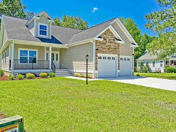 Living is easy in this generously spacious home with golf course views. This open floor plan has 3 spacious bedrooms and 2 luxurious bathrooms. The stylish gourmet kitchen comes complete with a stainless steel appliance package, soft close doors and drawers cabinetry. Living and Dining areas adorned with 10' trey ceilings and fireplace with gas logs and beautiful hardwood floors.The master bedroom features walk in closet and stylish master bath with custom tiled shower, whirlpool tub, double vanity, comfort height toilets and extra insulation in walls for added privacy. Relax on the rocking chair front porch and watch golfers tee off on the 17th fairway or choose the back yard to watch golfers putt on the 16th green. This custom built home reflects quality construction and comfort features. Meadowlands community has pool and amenity center and is conveniently located to the NC/SC border, whether you choose the fun and excitement of Myrtle Beach or historic downtown Wilmington. 5 minutes to shopping dining, Calabash waterfront. 15 minutes to area beaches. Square footage is approximate and not guaranteed. Must be verified by the buyer.