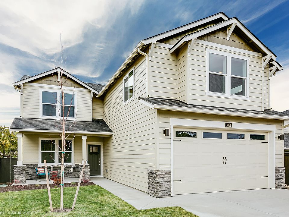 Winter savings, save up to $15,000 with use of recommended lenders. The popular 1574 square foot Hudson is an efficiently-designed, mid-sized single level home offering both space and comfort. The open kitchen connects effortlessly with the dining and living room. Kitchen includes plenty of counter space and cupboard storage with a breakfast bar that brings company together for entertaining in the heart of the home. The expansive living room and adjoining dining area complete this entertainment space. The spacious and private main suite boasts a dual vanity bathroom, separate shower and an enormous closet. The other two sizeable bedrooms share the second bathroom with a long hallway providing privacy between the main and secondary spaces, ideal for many lifestyles. This home includes an over-sized two car garage, front porch, covered patio, A/C, fully fenced backyard at the best overall value that Redmond has to offer! Call this home yours! Photos are of a similar home.