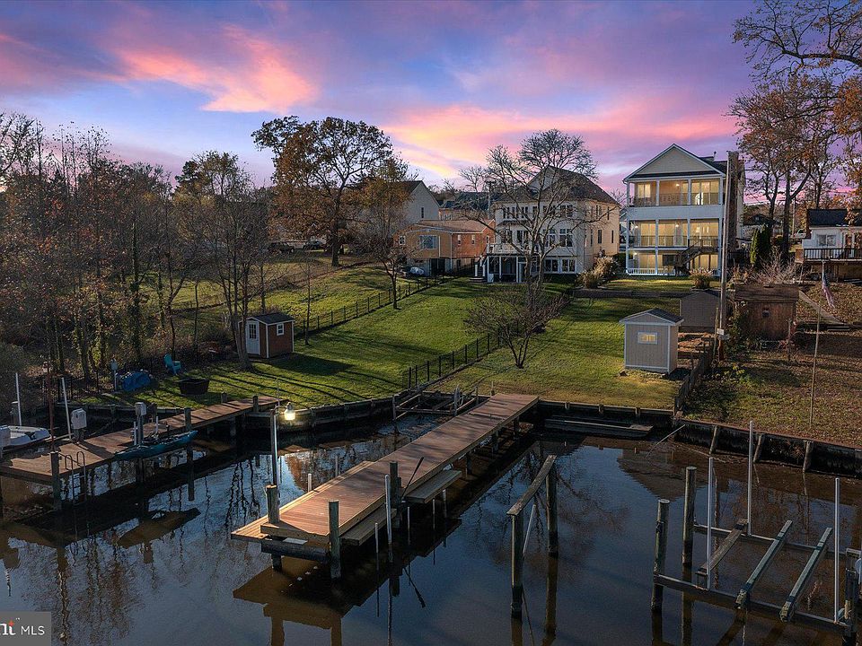 Exquisite waterfront custom home designed and built to exceed expectations with a commitment to quality craftsmanship, unique design and extraordinary detail. Nestled between Stoney Creek and Eli Cove and just minutes to the Patapsco the location can’t be beat. Every once in a while you stumble upon a true gem; a masterpiece. This is one. Every inch of this nearly 3,770 square foot home has been meticulously maintained with no detail overlooked and no expense spared. This spectacular open floor plan waterfront home offers the quintessential waterfront lifestyle people only dream of. With unobstructed, panoramic views of Eli Cove, you will look forward to coming home simply to relax on one of your two stunning decks (10 x 30) the patio or take a sunrise cruise right from your private pier. Toss a line, catch some crabs, grab a cold one and just relax, take it all in. It’s what you worked your whole life for. Upon entering the home, you will immediately take notice of the grandeur and intricate detailing of this impressive home. Built in 2006 to take advantage of the water views, it was built with the highest standards and finest materials to suit the most discerning buyer. Gracious rooms, two fireplaces, hardwood flooring, timeless luxury tile and a custom designed kitchen with chic maple cabinetry, stainless steel appliances, double wall ovens, brand new cooktop, trendy glass backsplash, an under the counter wine center and a custom built in hot plate! What set’s this home apart? To start, enjoy the voluminous 10-12 foot ceilings and expansive water views from the owner’s suite. The finished lower level which enjoys a private entrance and two 12’ wide sliding glass doors that walk out to the spacious yard) was built to be versatile space - it has two bedrooms, a bath, full kitchen and laundry facilities and can be used as an income producing unit, an in-law suite, a home based business or a casual and comfortable guest quarters…you decide. It’s all yours! Some of the other finer details of the home - dentil crown molding and a tray ceiling in the dining room, vaulted and cathedral ceilings, custom ornamental powder coated wrought iron balusters at the stairs and exterior decks, a gas line on the deck for your grilling enjoyment, arched entry into the dining room, hardiplank siding, double turned gable, plenty of parking and 5 spacious bedrooms. The owner’s bathroom - WOW!!! Private shower, soaking tub, dual vanities and ample closet space. The attic is floored, 3 zone HVAC system with propane backup system, floors are insulated (R19), 8’ double sliding glass doors to watch the world go by, two expansive decks with high end tile (you will not believe how gorgeous they are), a buried 500 gallon propane tank, Propane gas hook up for future whole house generator, 2x6 exterior wall framing with R19 insulation, custom bullnose corner beads, the garage has tons of overhead storage …and so much more! Feel your blood pressure go down the moment you enter the home and experience the commanding views . Take a moment to silence your mind as you look out the window to see the Great Blue Heron and Ospreys feed, nest and soar. Welcome home!