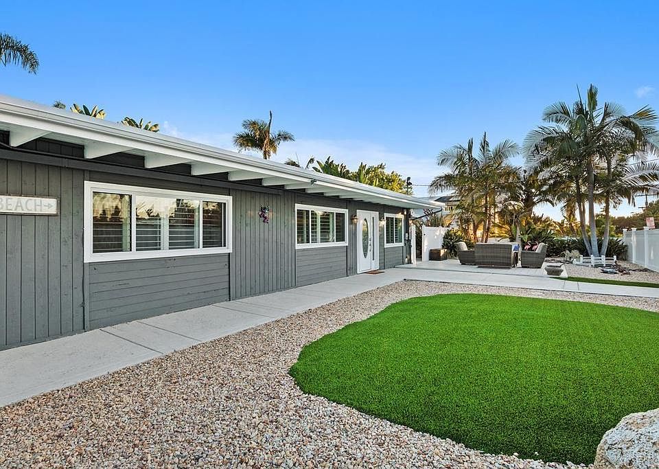 A rare opportunity in one of Encinitas' most special neighborhoods around! This turn-key gem is ready for you to spread out, soak up the summer sun, and unwind in your lush, tropical (yet low-maintenance!) yard. A spacious wraparound deck connects seamlessly to the home, blurring the lines between indoor comfort and outdoor living. Inside, the Primary Suite features cherry wood floors, a walk-in closet with convenient laundry access, and sliding sun shades. Entertain with ease in the built-in outdoor kitchen, store your surfboards in the dedicated storage room, or get creative in the fully finished garage, complete with insulation and a new floor. Newer owned solar (2022) adds energy efficiency, while the third bedroom—currently set up as an office with full closet and zoned heating and cooling—can easily be converted back to a bedroom. Full privacy fencing at the street gives the entire property a tucked-away feel—like your own private retreat. And with the permanent street barricade in place, it is your own cul-de-sac. Peace, quiet, and total privacy await!