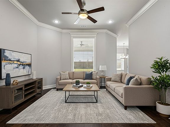 Stunning home features 3512 square feet, 5 bedrooms, 4 bathrooms, 3 car garage, bonus room, 2 living areas, plus formal dining room. Agent Owned. Eat-in kitchen w/ farmhouse stainless sink, shaker style cabinets, granite countertops, tile back splash, microwave, built-in oven, countertop gas cooktop, & pantry. Living room w/ gas log fireplace including stone accent & custom made mantle. Primary suite features double sink w/ full mirror, jacuzzi tub, tiled / walk-in shower w/ glass door, oversized walk-in closet, & private patio area. Home features; 3 cm granite, custom cabinets, crown molding, vinyl low E windows, brick maintenance free exterior, flat yard, & keyless entry. New Roof and exterior paint 2025. Perfect home for entertaining!