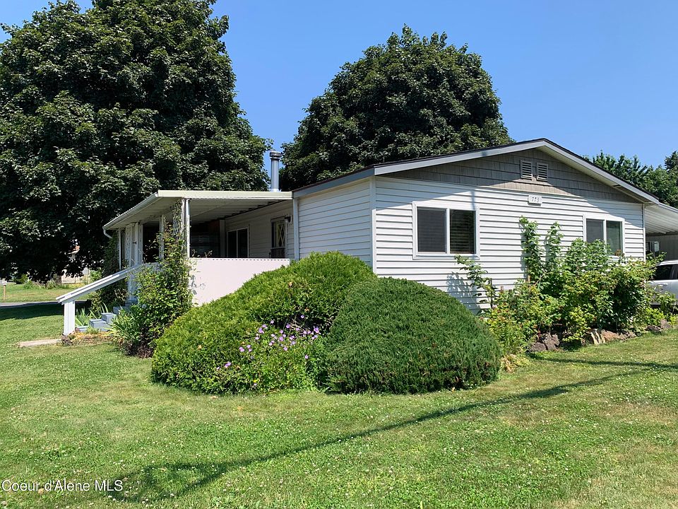 22X16 WORKSHOP/STORAGE w/ Power! The two-car PULL-THROUGH carport means you won't ever have to back out onto the street! This is a solid, well-kept home that could benefit from a few cosmetic updates-the sellers are offering a $3000 CREDIT at closing to help out! One of the most peaceful 55+ parks in Kootenai County with one of the lowest rents -$625 includes W/S/G & SNOW REMOVAL! Clubhouse has full kitchen, gym, library & billiard room!