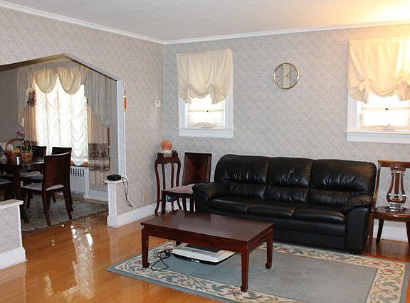 This detached Cape style house offers a spacious living room, formal dining room, updated eat-in kitchen, two full modern bathrooms, four bedrooms, new hardwood floors, full finished basement with ceramic tile flooring, new PVC fencing, screened patio, private yard, long three car private driveway & detached garage! Zoned for the newly expanded & highly regarded PS/IS 113! Near Atlas Park Mall & locals buses!