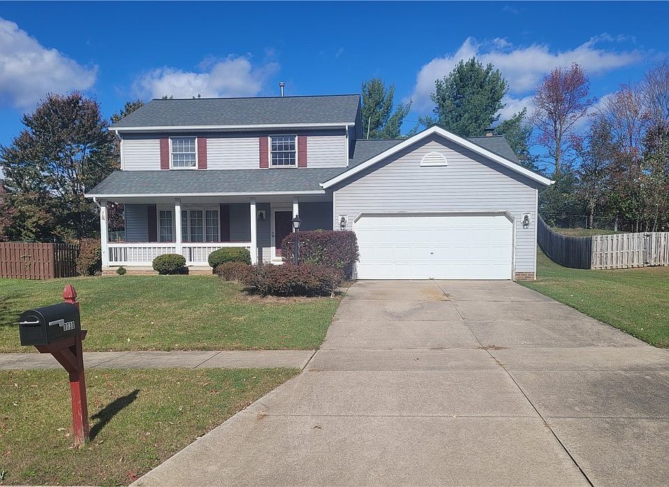 A great opportunity is waiting in this spacious 3-bedroom colonial on a private cul-de-sac street. Enter from the charming front porch to the foyer hall that flows to a formal living and dining room, a spacious eat-in kitchen with sliding doors leading to a private deck and continues to the family room featuring a woodburning fireplace. The convenient main floor utility room and half bath rounds out the first floor. The second floor features the primary suite along with two additional bedrooms and a full bath. The unfinished lower level provides opportunity to create additional living space to fit your lifestyle. Extra storage in the garage attic with an easy access pull down stairs. Conveniently located, the home is ready for updates and your personal style.