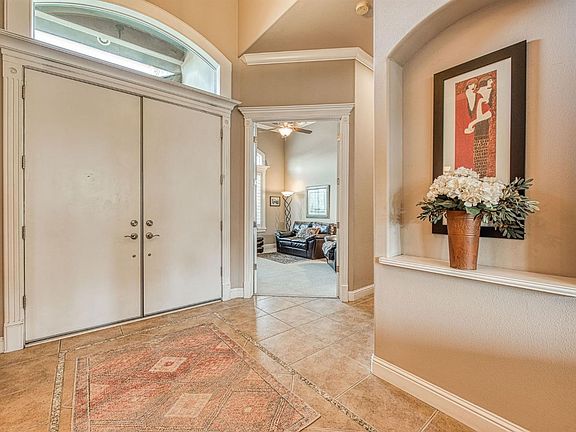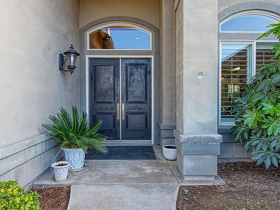 Welcome to the luxury neighborhood of Bellaviera and discover a truly beautiful custom residence, perfectly situated on a peaceful cul-de-sac. This exceptional single-story home includes every feature on your wish list: 4 bedrooms plus a dedicated office, a refreshing pool, a 3-car garage, and the significant efficiency of OWNED solar! Your immediate impression upon entering the gracious foyer will be one of grandeur. The home unfolds into the magnificent great room, where soaring ceilings and abundant natural light create an open, airy ambiance. Anchored by a handsome stone fireplace and a built-in entertainment center, a huge picture window provides a view of the tranquil rear grounds. The gourmet kitchen features granite counters, a gas cooktop, pantry, all seamlessly connected to a casual dining area and breakfast bar. This wing of the home contains a huge isolated bedroom/bonus room along with a full bath, offering privacy for guests or multi-generational living. On the opposite wing, the primary suite awaits, accompanied by 2 additional generously sized bedrooms and the office/flex room. The primary suite itself is a haven of relaxation, featuring a cozy gas fireplace, dual walk-in closets, and an expansive spa like bath with an oversized soaking tub and separate shower. This is truly a wonderful, intuitive floor plan designed for effortless living. Outside, your personal paradise awaits. The large covered patio, accessible from both the primary suite and the kitchen, is an ideal extension of your living space. Perfect for quiet relaxation or outdoor dining. Beyond the patio, the beautiful pebble tech pool with rock waterfall creates a tranquil environment. The perimeter is fully secured by a block wall fence, ensuring privacy and giving ample side yard space. This is the home you have been waiting for! Call today to arrange a private tour.